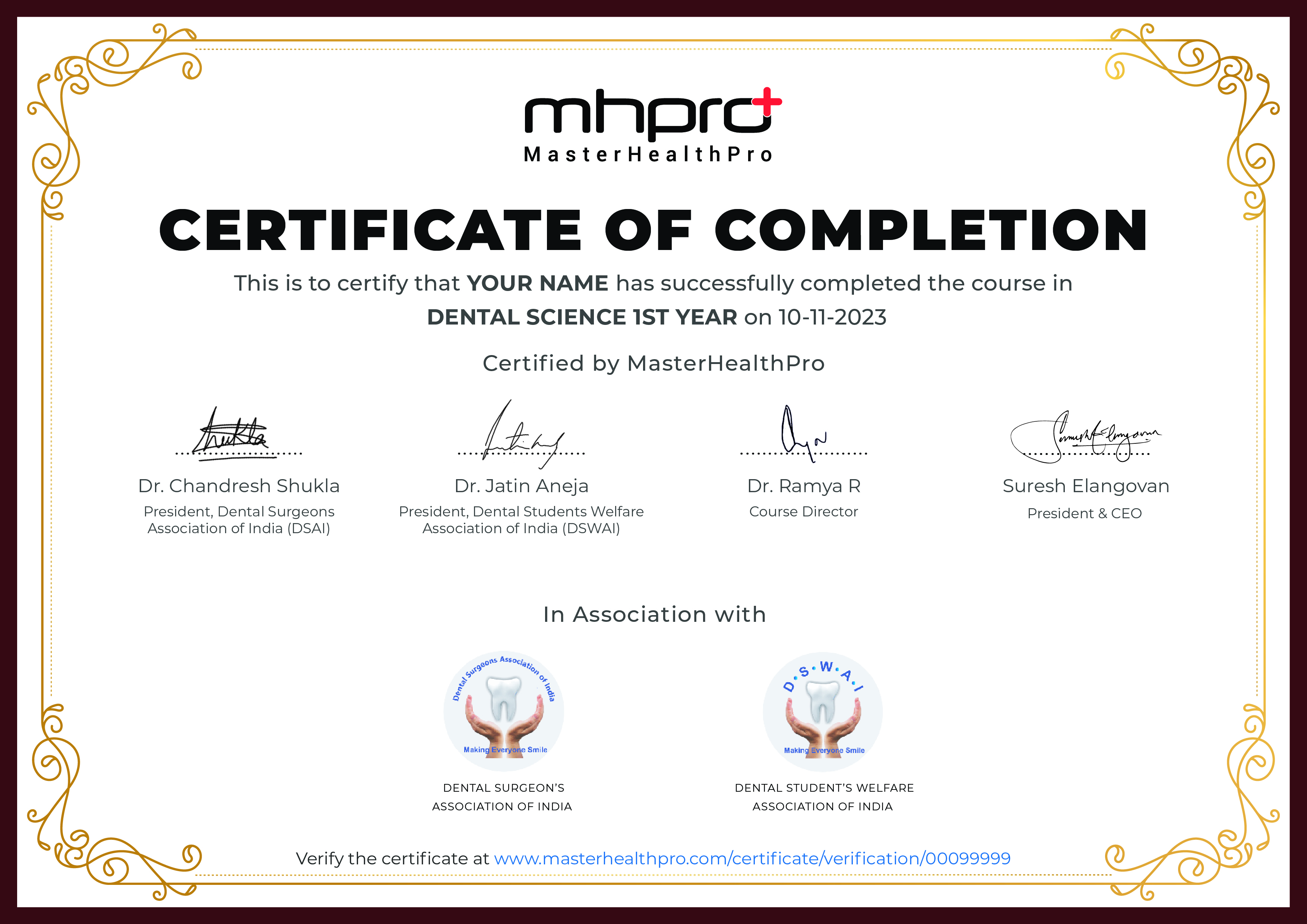 President, Dental Surgeons Association of India (DSAI)